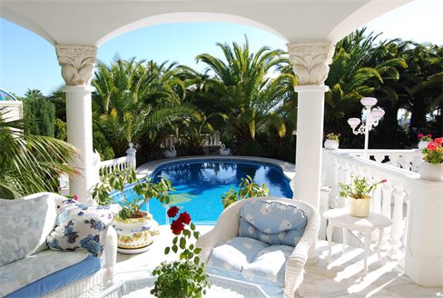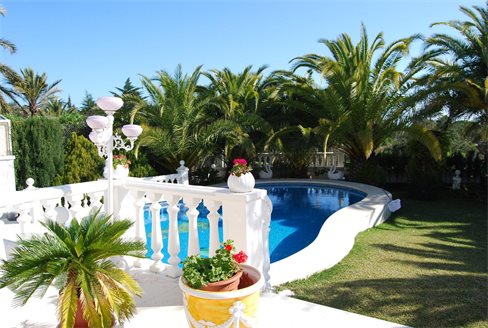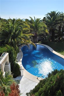 Detached villa with pool and private garden in a quiet residential area, five minutes walk from the beach and overlooking the sea.