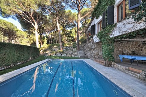 It is surrounded by a 1,325 m2 plot, it has 412 m2 built with a swimming pool, and in the other part of the plot there is the independent garage for two cars and a porch with an excellent barbecue area.