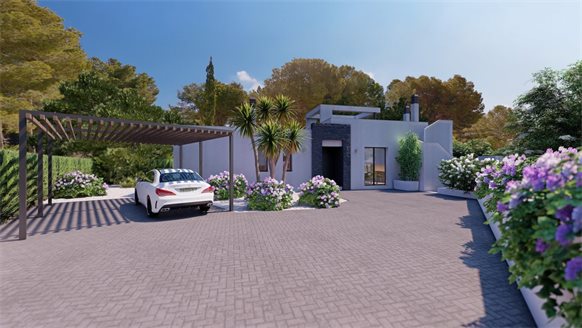 The house is surrounded by a strip of garden and in the back side, is located the main entrance, with a pergola to save one car.