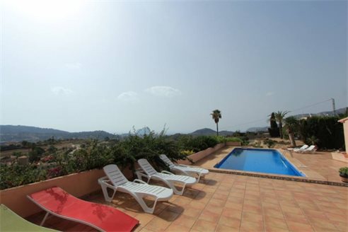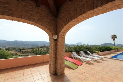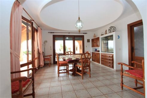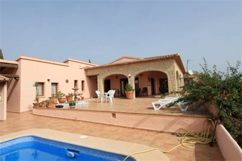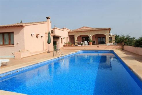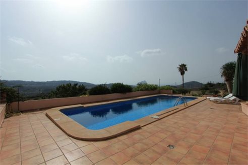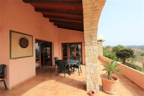 This property offers nice sea views also views over the famous Rock of Calpe and to the surrounding valley. It was built in 1994 on a fairly flat plot of 5.067 m2. Through an electric door is accessed to the parking area and to the main entrance of the house. The MAIN FLOOR of 303,87m2, consist of an entrance porch with natural stone, an entrance hall, two bedrooms with fitted wardrobes, a family bathroom and a large bedroom with bathroom and dressing room. The independent kitchen leads to the garage. The bright living - dining room has got a fireplace and lead through ample doors to a welcoming porch with natural stone and also to the pool area, terrace, barbecue and there is an annex where there is a toilet with shower, a double bedroom and a spacious room, which is it can be used as a bedroom or office or living room ... etc ... In the SEMI BASEMENT floor there is a separate apartment consisting of 62,08m2 open kitchen to the living room, two bedrooms and a bathroom. On this same level there is a basement of 210 which is used as the pool room installation, utility room..etc... The house is equipped with under floor heating. The garden has automatic irrigation system and fruit trees.