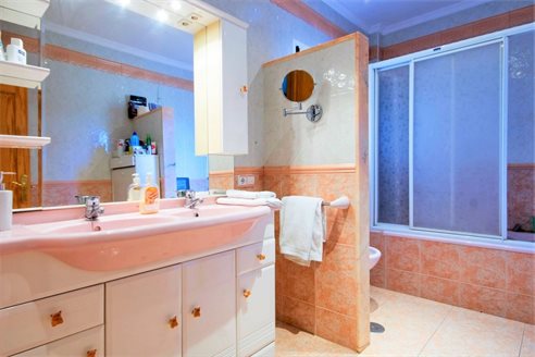 On the upper floor, the villa consists of a large living room with sofa chaise-longue, air conditioning, satellite TV and exit to a covered terrace with views to the Peñon Ifach.