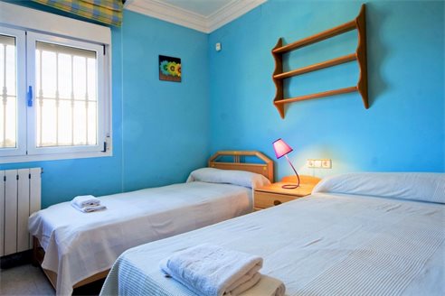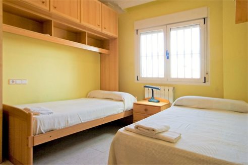 There is a spacious fully equipped kitchen, 3 bedrooms with 2 individual beds, 1 bedrooms with double bed, 2 bathrooms (1 en suite) with bathtub, wc and washbasin.
