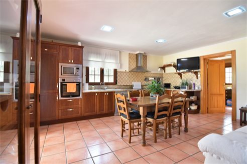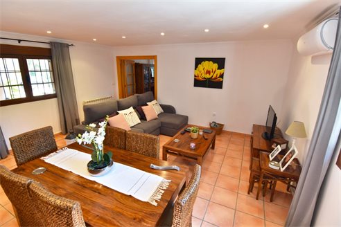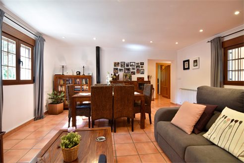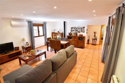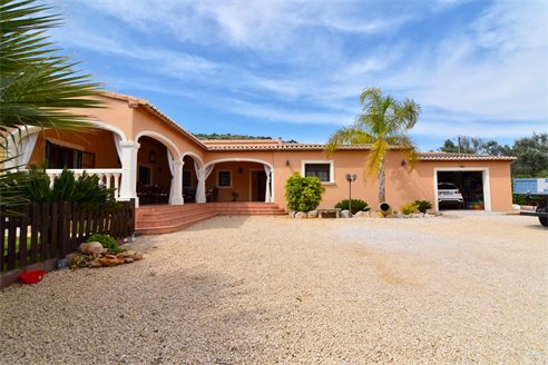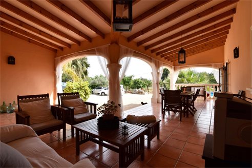 A 4 bedroom detached villa in Senija, Costa Blanca, with private pool and mountain views, 10 km from the beach. The villa was built in 2005 and is located on an 8.500 sqm extensive plot, in a quiet residential area just 10 km from the beach, 2 km from Mercadona supermarket, 2.8 km from Lidl, 12.5 km from Aldi and 800 m from restaurants. Alicante airport is 85 km away. The house is built on a single floor and the distribution is 1 spacious living-dining room, 1 fully equipped independent kitchen, 4 bright bedrooms with fitted wardrobes and 2 bathrooms, 1 en-suite bathroom and both with shower. Also, it has a gas central heating, chimney, air conditioning, laundry, pantry, double-glazed windows with mosquito nets, shutters and security bars. The fully fenced outdoor area has a 8x4 private pool, a large Mediterranean-style garden with barbecue, water well, garage and parking for more than 8 cars.