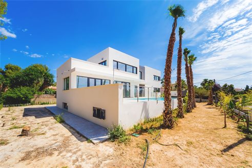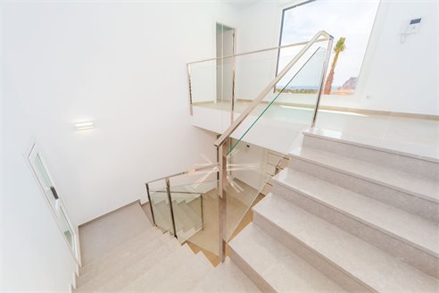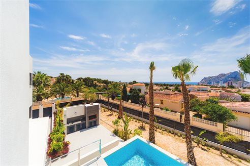 A 3 bedroom modern luxurious villa in Benissa, Costa Blanca, with private pool and sea views, just 1.5 km from the beach. Modern Villa with luxurious qualities built in one of the best areas of the Costa Blanca, 1.5 km from the beach of La Fustera, on the coast of Benissa, between the towns of Moraira and Calpe. The Alicante airport is only 83 km away from the property. The villa extends over a plot of 800 sqm and is located in one of the most beautiful residential areas of the Costa Blanca offering an extraordinary attractive and great interest ecological views with a coastline full of numerous beaches and hidden coves. The villa, a healthy construction and Bioclima, with A certificate, corresponds to an isolated topology, single family house with pool, composed of two floors above ground and basement. The structure that supports this villa also makes it unique due to the dialogue space it generates, a more resistant and insulating structure than the conventional structure. This absence of the so-called 'Thermic Bridge' generates a cave effect maintaining the same temperature throughout the year, between 21 and 23 degrees. Also, the constructive technology, besides being based on a concept of health and comfort when renewing the air constantly through the equipment of heat recuperator, is also based on the maximum efficiency as there is no loss of energy. - Basement: Gym, Garage, room debugging purposes pool, terrace and Barbecue discovered. -Ground floor has hall of living-kitchen-dining room, staircase leading to the upper floor, toilet, laundry, bathroom, bedroom, porch, pergola light aluminium prefabricated white, swimming pool and terrace. It also has an elevator preinstallation. -High floor consists of access staircase, two bedrooms, dressing room, two bathrooms and terrace. Among the main characteristics, qualities and finishes of the house: -Modern kitchen with island, open to the dining room and equipped with high-end Electrodomestics. -Sanitary, faucet and screens of the Roca house. Victoria House Bathroom furniture. -Heating by Radiant floor