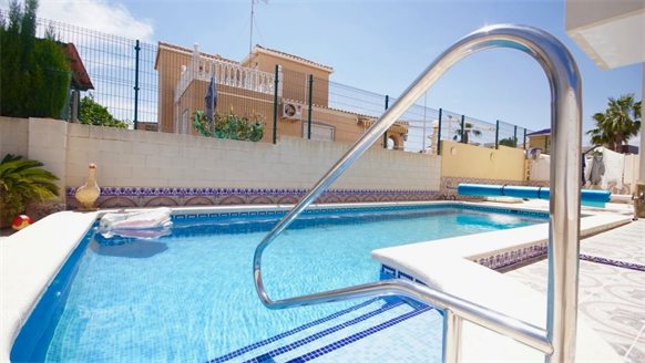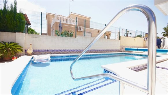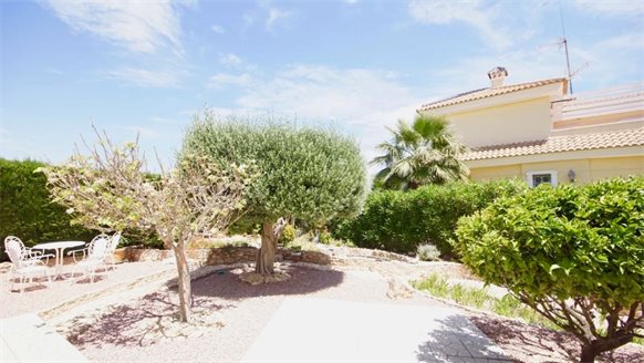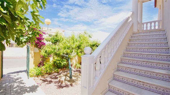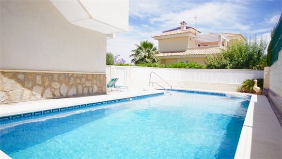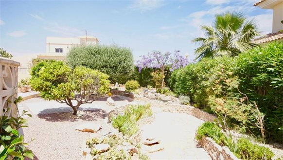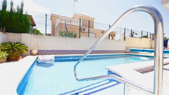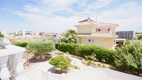 Magnificent villa located just 400 meters from the CC Zenia Blvd, and 1,200 meters from the beach of La Zenia. It has a plot of 600 m2 in which there is a private pool, very nice garden areas, fish pond, drying rack, and mature fruit trees, a closed garage and access by 2 streets. On the ground floor, a hall of 40 meters has been converted into bedrooms, there is a kitchen, a bathroom and connects to the garage. The house is accessed by 2 external stairs where there is a lovely terrace with beautiful views facing South. We also find on this floor, living room with fireplace, extra room, kitchen, two double bedrooms and 2 bathrooms, one en suite. From the terrace up a staircase to a solarium with a storage room overlooking the area of La Zona and the sea in the background. It is in perfect condition both exterior and interior. . All construction is legally declared in writing. A magnificent property. Opportunity to live in an exclusive area.. . La Zenia is a typical Spanish coastal tourist area, located south of the Costa Blanca and 30 minutes from two international airports such as San Javier in Murcia and Elche - Alicante. It is located in the heart of Orihuela Costa. There is a great mix of nationalities among its residents and visitors.. . Its beautiful beaches have been awarded the status of Blue Flag. They have a wonderful walk to walk or bike between them with more than 15 km facing the sea. Highly recommended!. . Orihuela Costa is complemented by a wonderful selection of shops, cafes, supermarkets, bars, and restaurants. Only 2 km from the magnificent C.C. Zenia Blvd.. . Orihuela Costa has a Mediterranean climate with 320 days of sunshine per year..