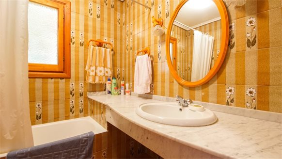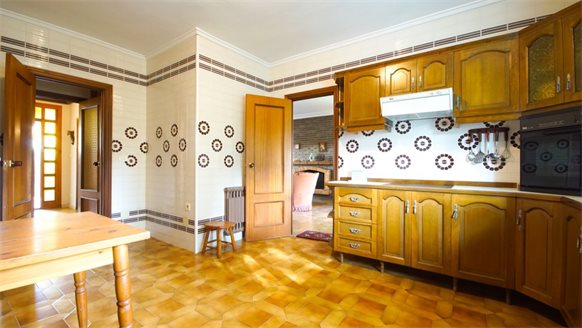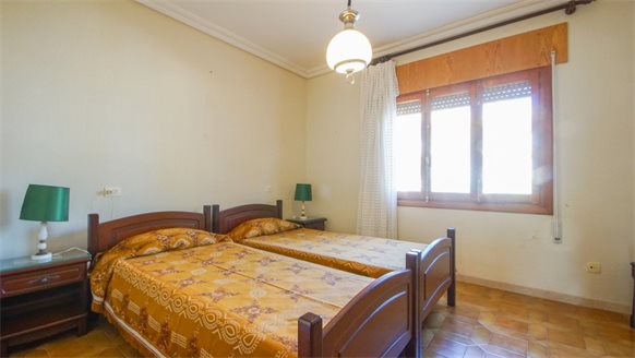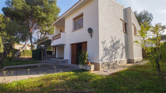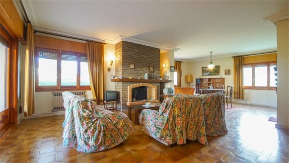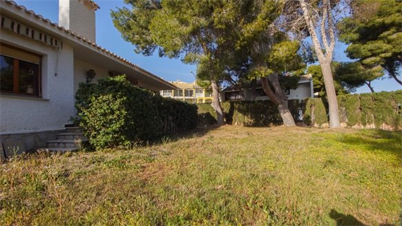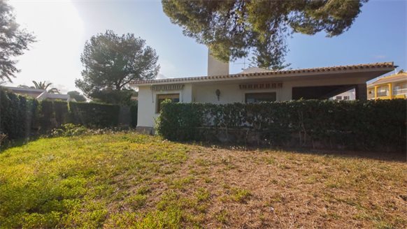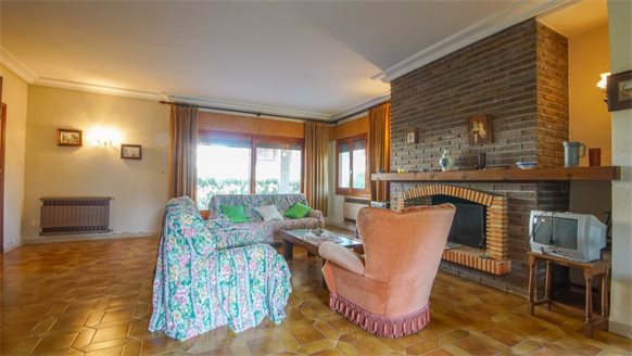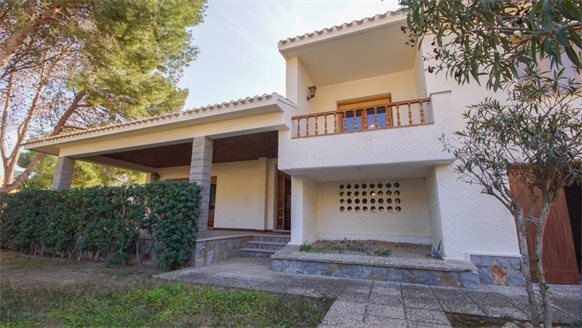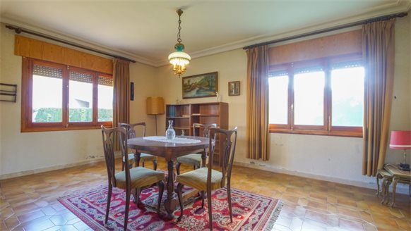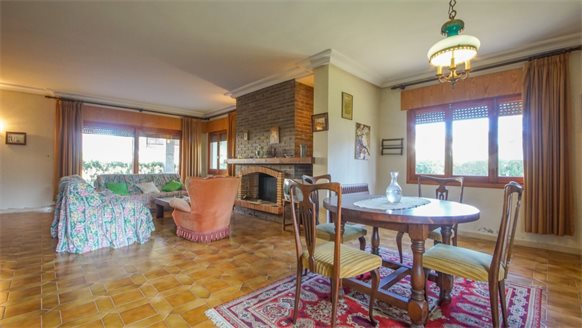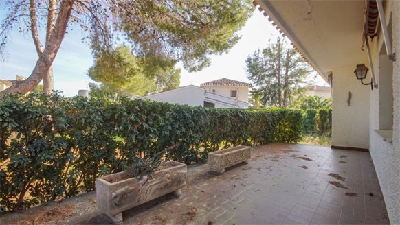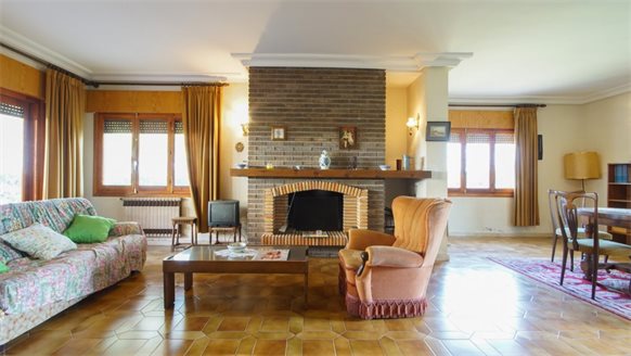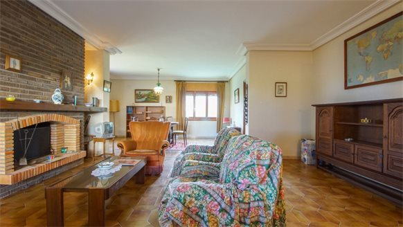 RETRO Mediterranean style villa on a 800 m2 plot with large pine trees.. Exclusive area, 1 km from the beach, in Dehesa de Campoamor. It has a large covered terrace with a wooden roof where you can enjoy the outdoors.. . The living room is very spacious and has a fireplace. The house has gas central heating. From the kitchen, you can go out to an outside gallery and enjoy the garden. On the upper floor where you access with very few steps, there are all bedrooms and bathrooms.. It also has a large garage of 70 m2 with a toilet, which is at street level. . . There is the possibility of building a private pool.. . Campoamor is a typical Spanish coastal tourist area, located in the south of the Costa Blanca and 45 minutes from two international airports such as San Javier in Murcia and Elche - Alicante. It is located on the seafront in Orihuela Costa. There is a great mix of nationalities among its residents and visitors. It has a great activity day and night throughout the year. It has services of all kinds, including the Cabo Roig Medical Center, pharmacies, supermarkets, restaurants, bars, shops and there is even an open-air market every Thursday. . . It is also just 2 km from the magnificent C.C. Zenia Blvd. In just 3 km, there are 4 golf courses of great international recognition such as Las Ramblas, Villamartin, Campoamor and Las Colinas Golf [amp,] Country. Its beautiful beaches have been awarded the Blue Flag status and are beautiful with fine sand. It also has a marina. Nearby is the beginning of a wonderful seafront promenade to explore on foot or by bicycle with more than 15 km facing the sea to Torrevieja. Highly recommended !! . . Orihuela Costa has a Mediterranean climate with 320 days of sunshine a year.