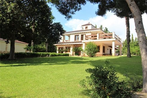 Magnificent villa with 2 floors and basement, 5 sovsalar, 4 banaer, gardener, pool, all located on a plot of 1,500 m2.. The ground floor consists of a lobby, a spacious living room with fireplace with access to the terrace, a fully equipped French kitchen, 3 double bedrooms with fitted wardrobes and a bathroom.. The first floor consists of 2 double bedrooms, fitted wardrobes, each with a badrum bathroom, jacuzzi or 2 terrasser.. The basement is divided into 2 rooms: a lounge with a bar and fireplace and another room for cinema or other activity, with air conditioning as well. Garage closed Independent. Gardens with trees, plants, barbecue area, chill-out and swimming pool. Bathroom and laundry in exteriör area.. Furnished. Air conditioning and underfloor heating throughout the house. High quality materials. Very good location in a very quiet area, complete privacy.