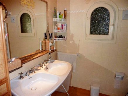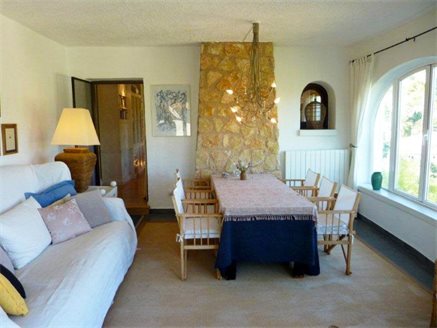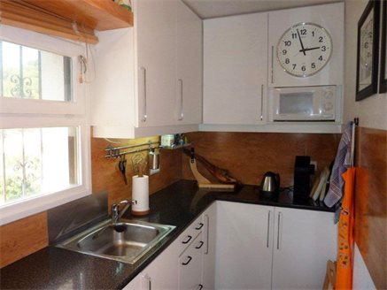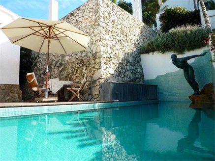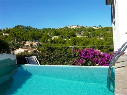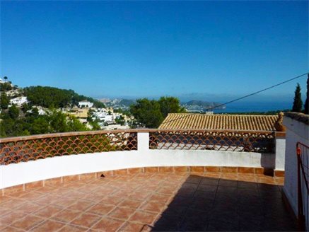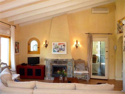 A 4 bedroom villa in Benissa, Costa Blanca, with private pool and mountain views, just 2.4 km from the beach. This charming villa is built on a 771 sqm plot, in a sunny and quiet residential area in Benissa, Costa Blanca, just 2.4 km from Cala Baladrar, 1.6 km from restaurants, 5.9 km from Mercadona supermarket, 10.8 km from Aldi and 10 km from Lidl. Alicante airport is located 90 km away. The villa has a welcoming feel and is well kept, offering 2 bedrooms on the main living are and two guest apartments on the lower level. On the main terrace there is a pool with a characteristic figure which makes the property stand out from other similar houses in the area. The garden is terraced with several sitting areas for sun and shade and there is a roof terrace with lovely views to the sea and Moraira bay. Lay-out: From street level steps lead down to the villa and main terrace and there are two entrances, the main and to the kitchen. This main living area has a charming naya all glassed in, ideal as dining room. The living room has high ceilings and a fireplace, the kitchen is closed and is located next to the pool terrace. Two bedrooms and a bathroom are also on this floor. Downstairs is a one bedroom studio apartment and a one bedroom apartment, both with a bathroom and the first with a kitchenette, the second with a full kitchen. There are two entrances and they are connected inside by a door, so they can be used together or individually. The roof terrace is connected to the naya through a spiral staircase. Features: newly installed central heating (oil), air-conditioning in living room and main bedroom, fireplace. Parking area for 2 cars.