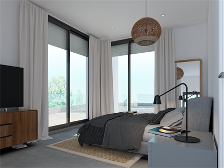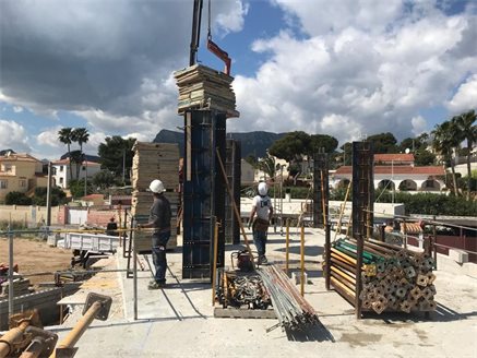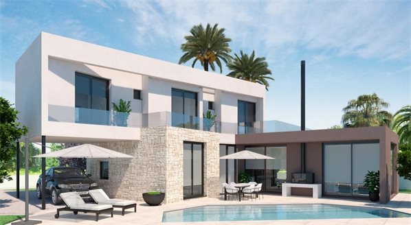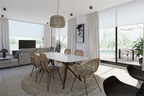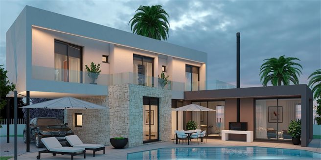 A 4 bedroom villa in Calpe, Costa Blanca, with private pool and open views, just 600 m from the beach. Gorgeous villa in Calpe of modern style built on 2 floors, only 600m from the beach, 160m from restaurants, 1.7 km from Mercadona, 1.2 km from Aldi and 300 m from Lidl supermarket. Alicante airport is 79 km away. On the main floor you find the living-and dining area, with the open kitchen, direct access to the terrace with the swimming pool and 1 bedroom with dressing room/bathroom and an independent bathroom. Going up the interior staircases, we can find 3 more bedrooms, there are 2 bathrooms (1 ensuite). Outside you can enjoy the private swimming pool, big terraces, barbecue area, a carport and a nice garden. Technal carpentry with safety glass, complete kitchen with electrical appliances, complete bathrooms and taps, led lighting, gas system for hot water and underfloor heating, air conditioning, solar panels, built-in wardrobes, electric blinds, interior alarm, pre-installation of external alarm and security cameras. rectangular overflowing swimming pool, barbecue area, laundry, completed garden. automatic gates. energy classification A, south-facing.