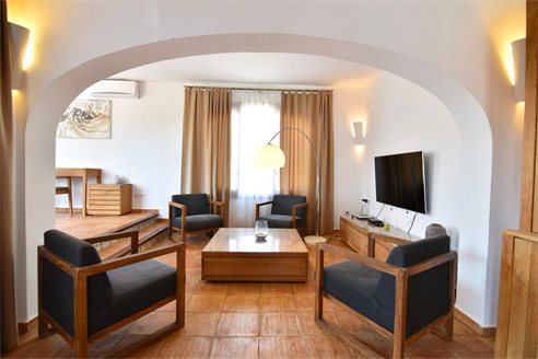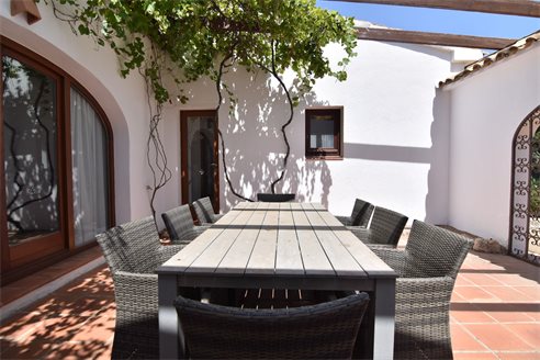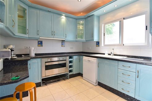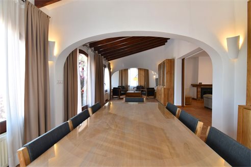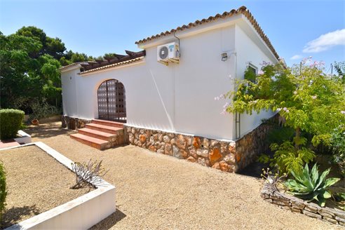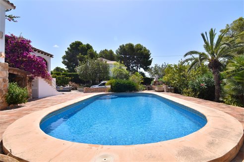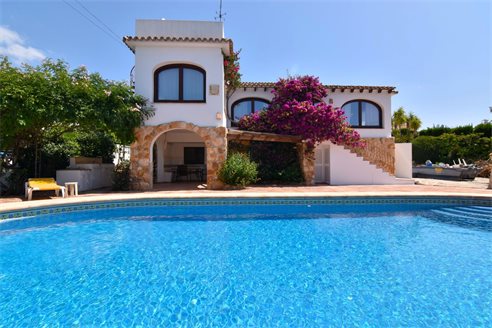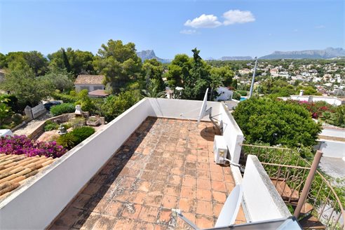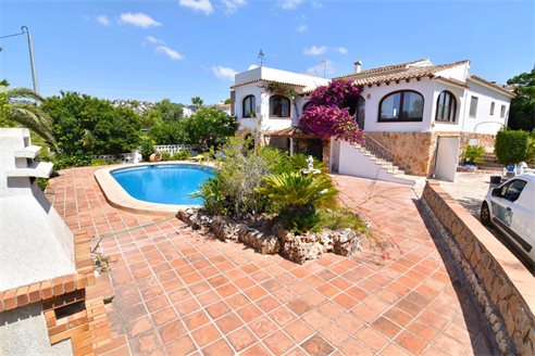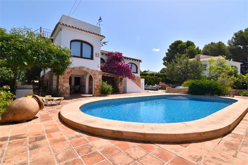 A 3 bedroom villa in Benissa, Costa Blanca, with private pool and sea views, just 1 km from the beach. The villa is built on a 1.093 sqm plot, in a sunny and quiet residential area in Benissa, Costa Blanca, just 1 km from Cala Baladrar, 800 m from restaurants, 7.6 km from Mercadona, 9.5 km from Aldi and 7.9 km from Lidl supermarket. Alicante Airport is 92 km away. The house is built on three floors, connected by an external staircases. It consists of 1 spacious living-dining room with a stone fireplace, 1 fully equipped independent kitchen, 1 laundry room, 3 bedrooms and 3 bathrooms, one of them en-suite and the other two independent with shower, sink and w.c. On the top floor, you can enjoy a solarium terrace with beautiful sea views. Also, it has gas central heating, air conditioning, wooden double glazed windows and fitted wardrobes. Outdoor, there is a 12 x 5 m private pool, outdoor shower, barbecue, Mediterranean-style garden, parking and garage for 2 cars.