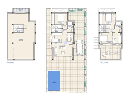 - 3/4 bedrooms, 3 bathrooms, living area 203 m2, terrace area 18.97 m2, basement, plot area 222 m2. It is possible to equip a solarium. The price is 395,000 euros. Keys in hand.