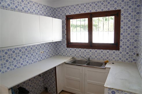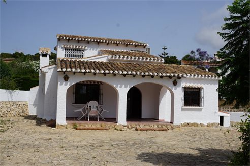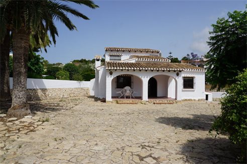A 3 bedroom detached villa in Benissa, Costa blanca, with open views, close to La Fustera beach. A very nicely situated double villa, in a quiet residential area close to La Fustera beach. The property comprises of a two level house in perfect condition and an adjoining complete 2 bedroom house on a single level with a large covered terrace and ample walled parking. House 1 - A private walled plot with a car port and mature Mediterranean garden, shaded patio. A lower floor living dining room, fitted kitchen, attractive complete bathroom and interior stairs leading to a second living room and a large double bedrooms. All in perfect condition with gas central heating and hot/cold air conditioning. House 2 - A small adjoining traditional Castilian style villa with 2 double bedrooms, a bathroom, independent kitchen, hallway and a living dining room opening to a large (20m2) covered and arched terrace. Plenty of natural stone paved private parking. This property is structurally sound but needs renovation. Nice sunny South facing aspect. Combined constructed area 180 sqm, plot 978 sqm.
