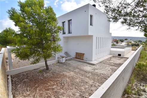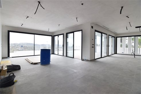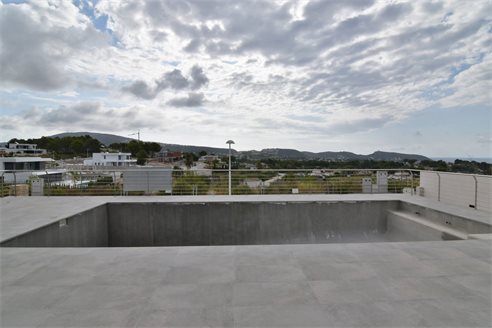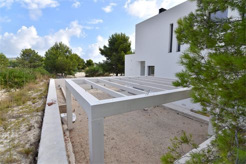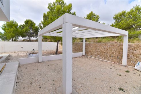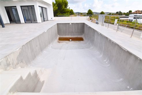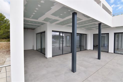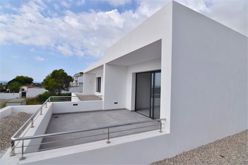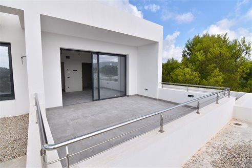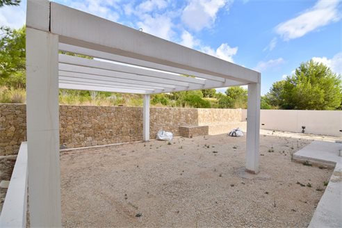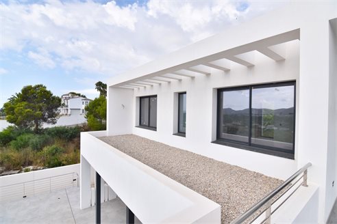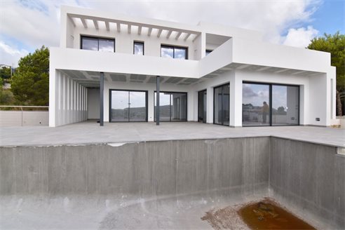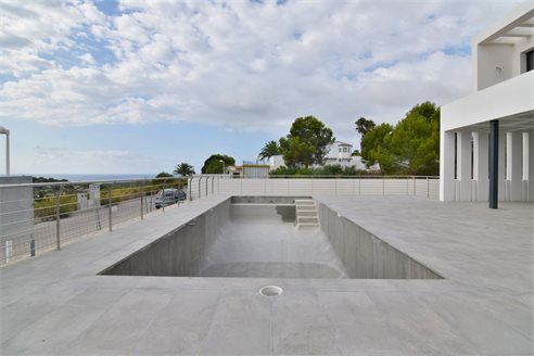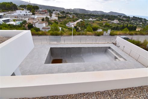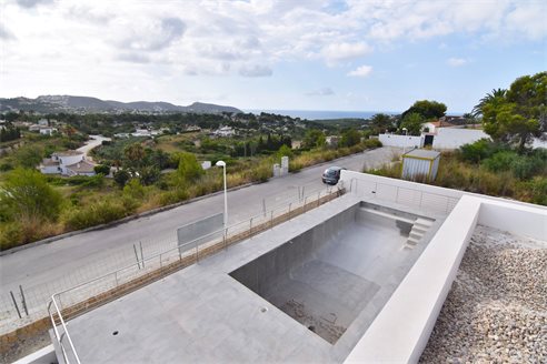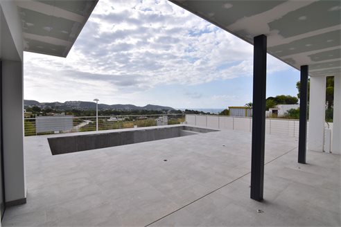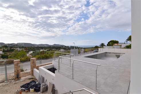 New build 4 bedroom villa in Moraira, with private pool and sea views, just 3.5 km from the beach. New construction villa in a modern minimalist style located on a fully fenced 812 sqm plot. It is situated in a familiar residential area in Moraira, just 3.5 km from beaches. The 281 sqm living area is built on two floors connected by an internal staircases. It is distributed in 1 living-dining room with access to the pool area, open kitchen, 4 bedrooms, 4 bathrooms, three of them with shower and the fourth one with shower and sink, as well as 1 toilet. Also, it has several terraces and solarium that offer beautiful sea views. On the other hand, it has an underfloor heating and air ducts for air conditioning. Outside, you can enjoy a private pool, garden with irrigation system and pergola-parking for several cars.