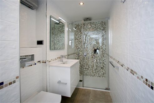 The heated pool with outdoor shower is surrounded by a large sun terrace and easy to maintain gardens equipped with automatic irrigation