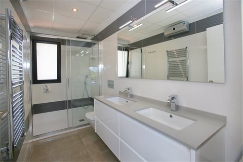 EXTRAS: Garage with automatic gate, parking, solarium, heating and air conditioning via heat pump, kitchen appliances Bosch, laundry room, hot water via solar panels, heated pool, outdoor shower, electric shutters in bedrooms, living rooms and corridors, fly screens, automatic irrigation, closed plot with electric entrance gate, sea view, panoramic view.