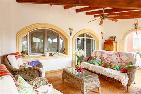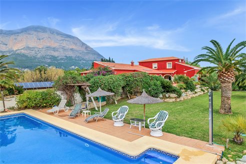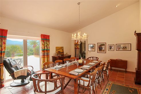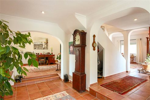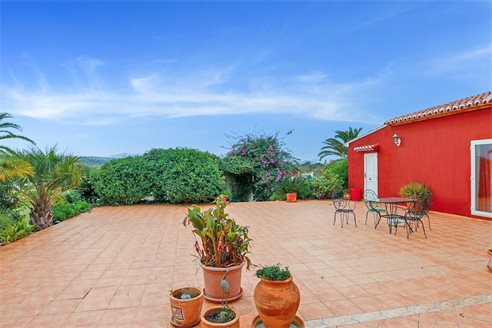 REDUCED FROM 845.000!!! Secure gates and a grand entrance driveway open into this breathtaking property on a vast plot of over 10,000m2.The main house is full of character and is built across 2 levels.The accommodation comprises of: a wide entrance hall and office space, a spacious and bright living room with a feature fireplace, a guest cloakroom, a master bedroom suite with patio doors and a splendid walk in dressing area as well as a very large adjoining bathroom with a bathtub and a walk in shower.It has a separate, well equipped, country-style kitchen and a grand, independent dining room with patio doors that open onto a large terrace with a summer kitchen/BBQ area and a fabulous glazed naya with seating areas. From here you can also access the delightful pool area with a very large 12x 6m swimming pool which enjoys plenty of scenic views and privacy.From the dining room there is also a further room that could be developed along with the dining room into a separate guest annexe.From the entrance hall, a staircase leads up to 2 good sized double bedrooms and a family bathroom with a walk in shower.In addition to the terraces and pool area, the grounds of this phenomenal property also boast landscaped Mediterranean gardens with abundant fruit and olive trees, a paddock, horse stables, a double garage and carport a feature pond and so much more.Viewing of this exceptional property is highly recommended.The property also benefits from an efficient solar energy system for water and heating (including underfloor heating), air conditioning, double glazing and a garden irrigation system.