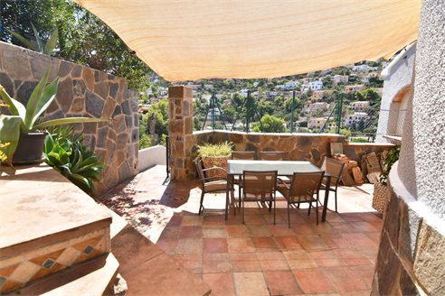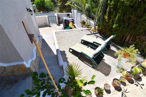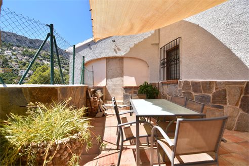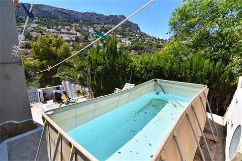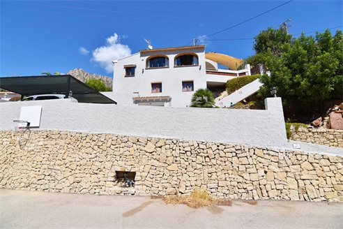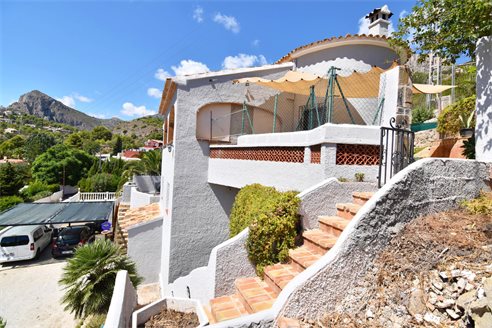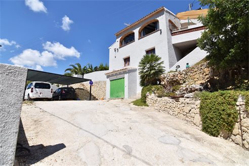 A 4 bedroom villa in Calpe, Costa Blanca, with partial sea views, just 2 km from the beach. Beautiful villa located on a 846 sqm plot in a family residential area in Calpe, Costa Blanca. It is located just 2 km from Puerto Blanco beach, 400 m from restaurants, 4.6 km from Mercadona supermarket, 5.8 km from Lidl and 6.7 km from Aldi. Alicante airport is located 75 km away. It is built on two separate apartments. Upper floor: 1 bright living dining room with fully equipped open kitchen, 3 bedrooms, 1 bathroom with shower and 1 toilet. Lower floor: apartment with a living room/bedroom, open kitchen and 1 bathroom with shower. Outside, the villa has a nice garden with fern, garage for 1 car, carport for 2/3 cars and space to build a pool and barbecue.