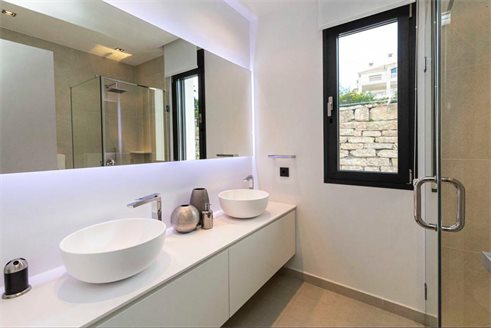 The outdoor area offers various spaces, allowing for everybody to find their piece of paradise. The barbecue area just off the kitchen, the lounge area on the main terrace, the sunbed area next to the infinity pool and also the garden area where you can relax and enjoy the sun!