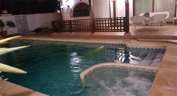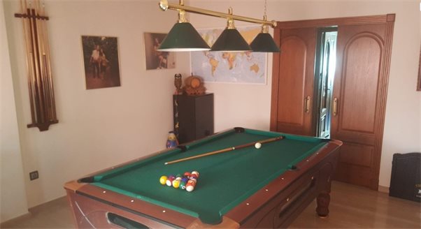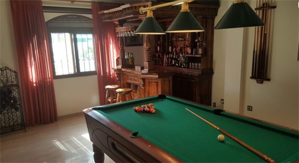 The villa is spread over two floors with a large separate kitchen, large living room, five double bedrooms and three full bathrooms (one with a spa bath). In addition to the 5 rooms, there is also a games room and a bar.