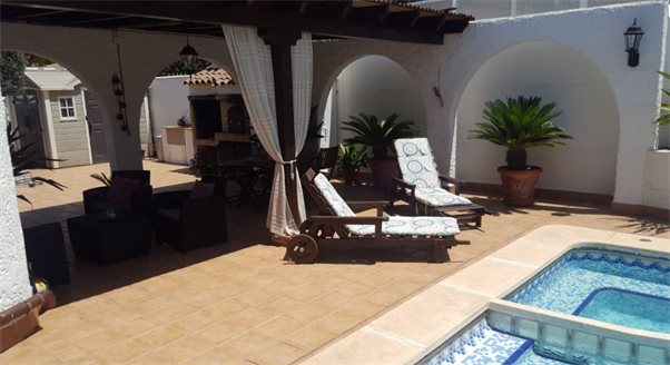 The garden has a paellero, oven, barbecue, sun loungers, outdoor shower, garage for two large cars and a huge pool with jacuzzi.