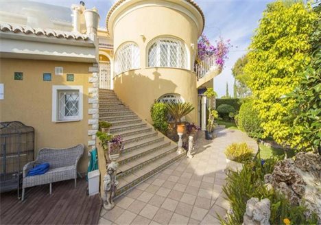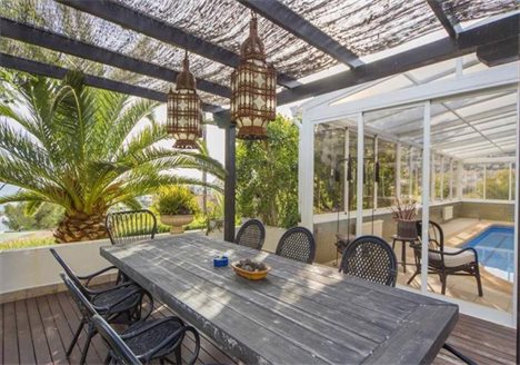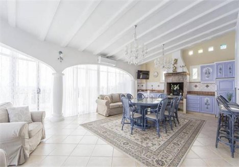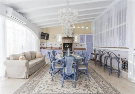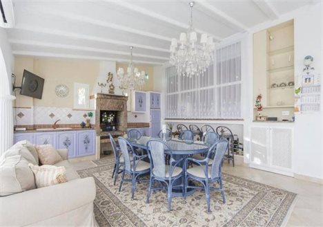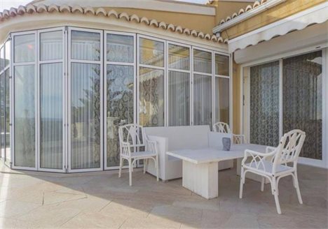 This beautiful villa in a classic style is located in Canuta urbanization, only 5 min walking to the beach and 15 min to the center. It has incredible panoramic views to the sea and the mountain and its very private due to its location and orientation. It is a 2-storey house with many wide terraces all overlooking the sea. On the first floor there are 3 bedrooms, 2 bathrooms, a kitchen and a living room. On the second floor which is the main one there is 3 bedrooms, 1 of them with on-suit bathroom and walk-in wardrobe with an access to the terrace, and 2 bedrooms, 1 bathroom, 1 WC, a huge kitchen and a wide living room with an access to the dinning room and the terrace. All the house is equipped with air conditioning and heating. There are 2 garages and an additional parking space. It has a lift directly from the main garage. The pool is glazed with sliding glass, and has heating for winter. In addition there is a private outdoor jacuzzi area. The plot of 1.500 m2 has different types of trees making the house very private. The villa is located only 5 min walking to the sea and 15 - to the center of Calpe.