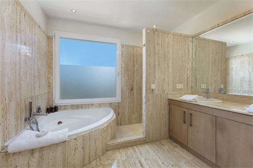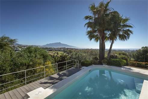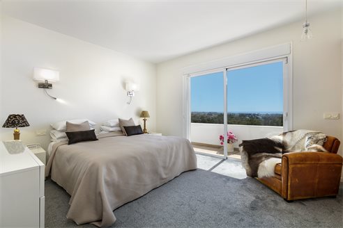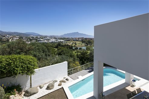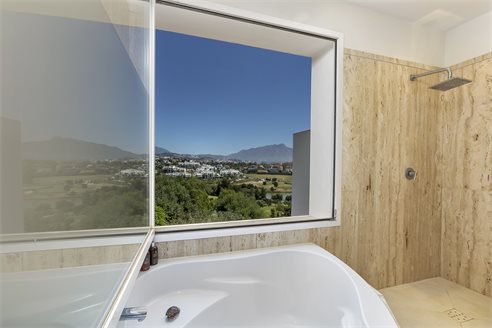 The first floor has the master suite with private terrace that has sea, golf and mountain views; guest suite; guest bedroom; and a guest bathroom. There is also an independent studio apartment with private access from the driveway, complete with an en suite bedroom and fully equipped kitchen.