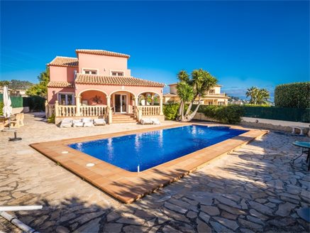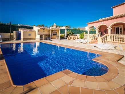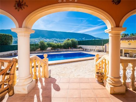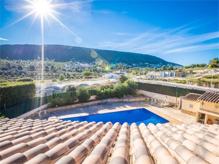 Well maintained villa, for Sale, Las Laderas, Javea, SpainA south facing 4-bedroom, 3-bathroom villa situated in the popular area of Las Laderas, JaveaA lovely 4-bedroom, 3-bathroom villa with open mountain views and stunning low maintenance Mediterranean gardens with a private swimming pool and outside kitchen BBQ area. The villa is distributed across 2 levels with a private driveway. The location of this property is perfect, being only a 10-minute drive to the Arenal beach, Javea and a couple of minutes to Javea Golf Course.Entering the villa by a secure gate takes you to a spacious driveway. Accessing the property at the pedestrian entrance takes you up to a beautiful porch area entering the villa. There is a lovely hallway which leads you to the living, kitchen, and dining area and the two double bedrooms and family bathroom.Through the corridor leads to the open plan living and dining area which leads out onto the L shaped covered naya and pool area. Off the living room there is a separate recently renovated fully fitted kitchen which also has its own access to the swimming pool. On this level there are two spacious double bedrooms and a spacious family bathroom and cloak/storage room.Leading upstairs takes you to 2 master ensuite bedrooms. The master bedroom has a private balcony which leads to a stunning peaceful sun terrace with beautiful open views and a walk-in wardrobe area.The lovely outside area has a spacious L shaped naya and 10X5 swimming pool. There is a BBQ area near the pool which overlooks the beautiful Granadella National Forest and is completely private.The villa benefits from gas central heating, a pelette burner, reversible air-conditioning, double glazing throughout, ceiling fans, electric blinds, and alarm system. This property is perfect for a family or holiday home.