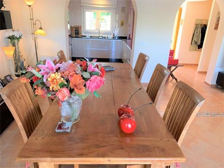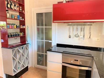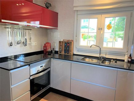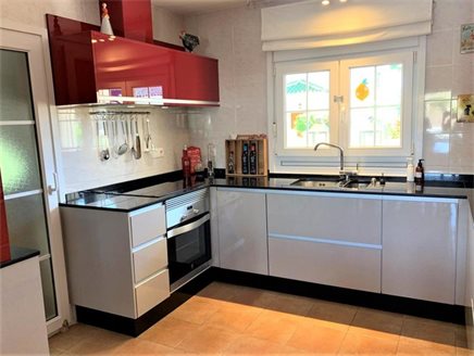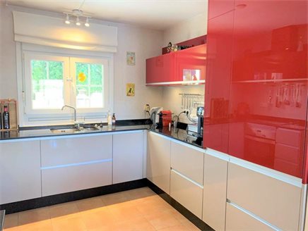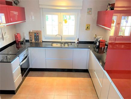 Ground floor: with an open plan kitchen, recently renovated, utility room, wide lounge -dining room with french doors towards the outside covered porch, toilet, and an adjacent spacious washing room, next to the enclose garage.