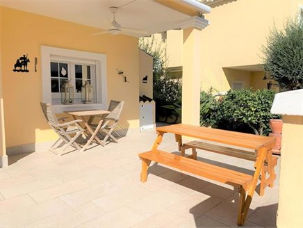 The whole outside area is remarkable, either front or back terrace, depending of your sun preferences; generous front terrace, for winter mornings, with space for breakfast and lunch. The back garden with mature bushes and palm trees, beautiful pool, enormous covered porch, for cool summer diners al fresco, is a dream.