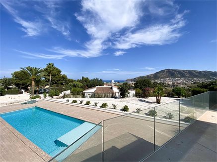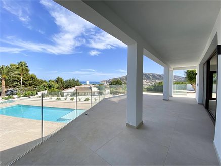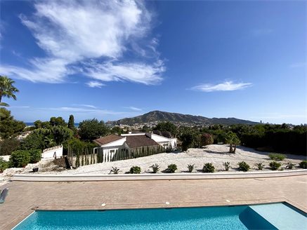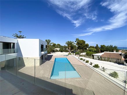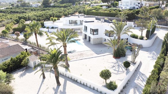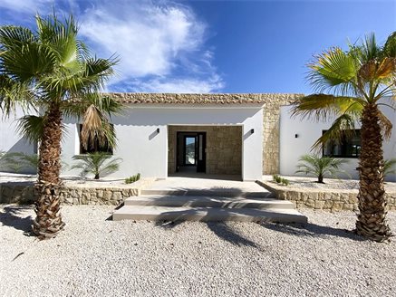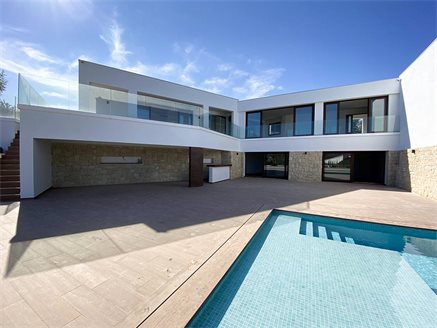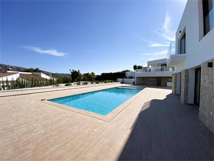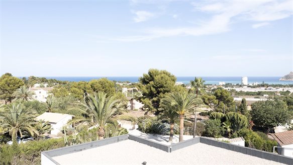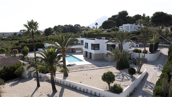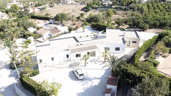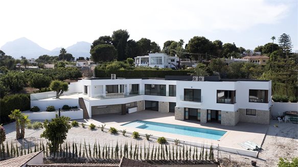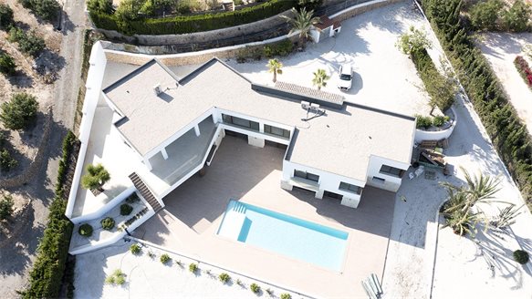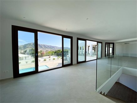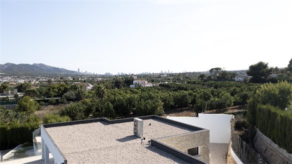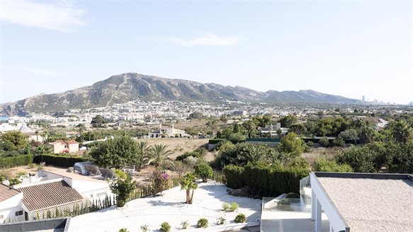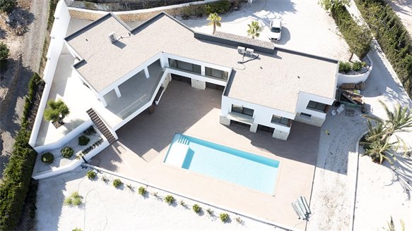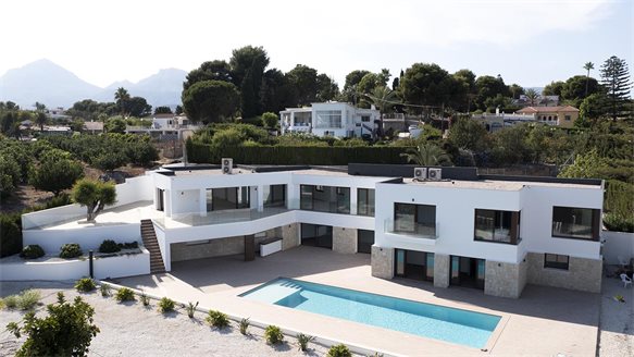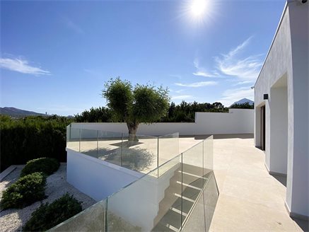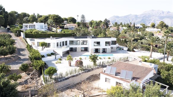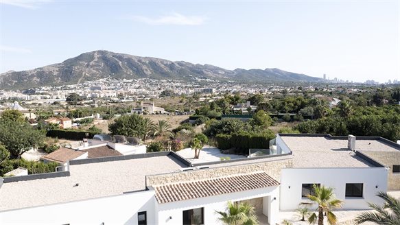Modern villa with private pool, garden and wine cellar on a large plot of 3000 m2 with panoramic sea and mountain views, close to the beach in Altea. Modern design, two-storey villa with panoramic windows that fill every room with natural light. The design of the villa is thought out to the smallest detail, which organically fit it into the surrounding landscape. A tree is planted on the open terrace in the shade of which it will be pleasant to relax on a hot day, it also creates an additional feeling of unity with nature and the surrounding landscape.