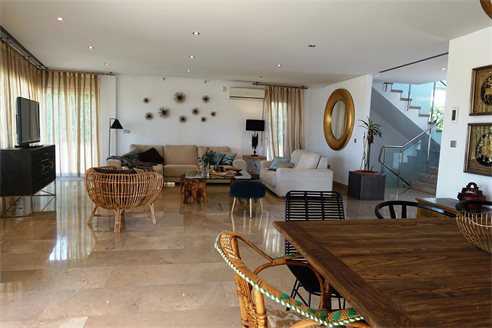 The house is situated on a plot of 550m2, has a built-up area of 437m4, of which 390m2 are useful and distributed in a very spacious living room, which has been elegantly organized and designed, with beautiful marble floors and exclusive finishes. Large windows offer magnificent views of the Mediterranean Sea. Spacious and bright kitchen, fully equipped with appliances, thought out and designed to the smallest detail. The house also has 5 bedrooms with fitted wardrobes and 5 bathrooms for added comfort. The hotel has a garage and a large terrace overlooking the private pool and garden. Home finishes include: marble floors, smooth paint, osmosis system, water softener, hot / cold air conditioner, double glazed windows, central vacuum, etc.