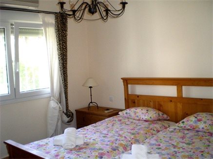 On the ground floor there is a double sliding door to a second living room with open kitchen; the third bedroom has its own shower room and patio doors to the pool terrace. There is also a fourth bedroom and a large storage room. The 800 sqm plot is entered through an automatic gate with a paved driveway leading to a garage with automatic gate and a roof terrace above. The beautiful garden with lawn, Mediterranean plants and palm trees is equipped with an automatic irrigation system and outdoor lighting. The pool has Roman steps, a natural stone beach entrance and a waterfall with an outdoor shower. The villa is equipped with an alarm, turn-tilt windows with safety glass, mosquito nets and blinds, air conditioning in the master bedroom, central heating.