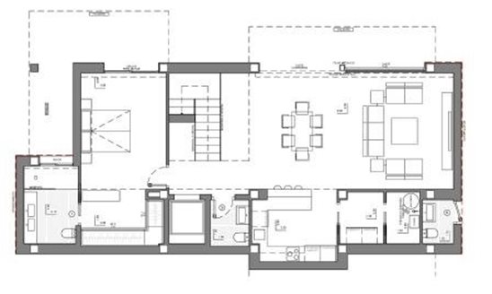 The ground floor is divided into two areas, bounded by the hall and the staircase. On one side we have the fourth bedroom with bathroom en suite, dressing room and access to the main terrace with a veranda. The other room houses a guest toilet, open kitchen with cooking island, the dining room with fireplace and access to the veranda and a bright living room. Three open spaces, flooded by the light of the Mediterranean and especially connected to the outside of the house, with several covered terraces, outside toilet, large terrace and an infinity pool with breathtaking views of the sea
