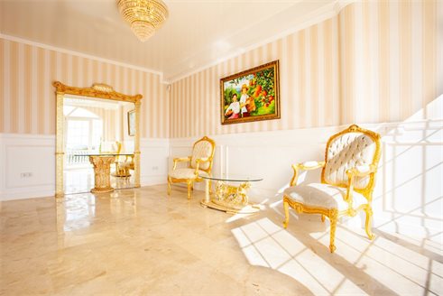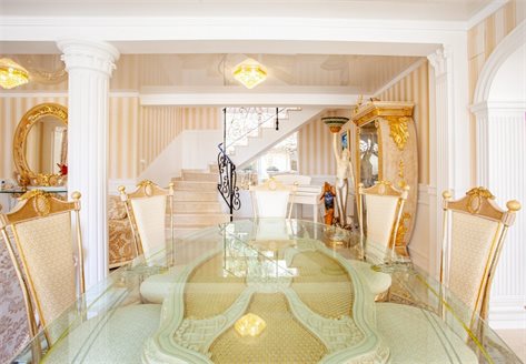 As soon as you pass the automatic gate, a long driveway leads to this impressive villa. In front of the house there is space to park for several vehicles. Here we find a closed garage (30m2), large terrace with swimming pool (33m2), garden with jacuzzi and a fully closed summer kitchen with bar.