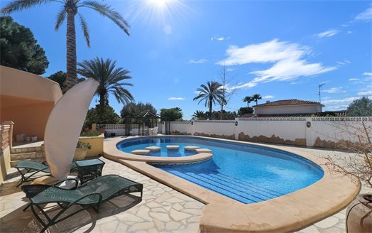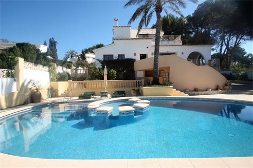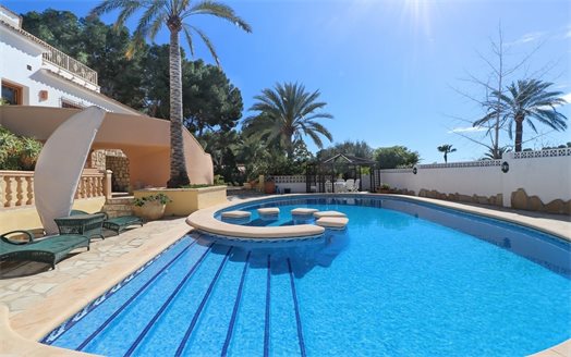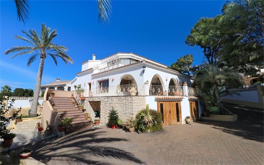 Villa for sale in Moraira, located in a very quiet area, just 750 meters from the center of Moraira. Located on a double plot of 1760 m2 and with a total area of 467 m2 spread over 2 floors.