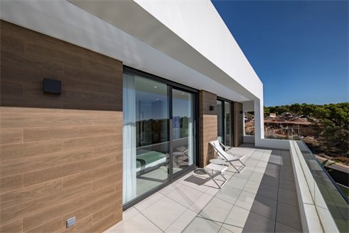 The houses have two floors and an underground garage. On the ground floor there is a spacious living room with large windows to make the most of natural light, an open kitchen with a center island, gallery area and fully furnished and equipped with quality appliances. This floor also has a bedroom and a bathroom . The upper floor consists of three spacious bedrooms with wardrobes, warm wooden floors and two bathrooms, one ensuite in the master bedroom, which includes a massage system and chromotherapy. In addition there are two terraces on the upper floor, from which you can enjoy the fantastic views.