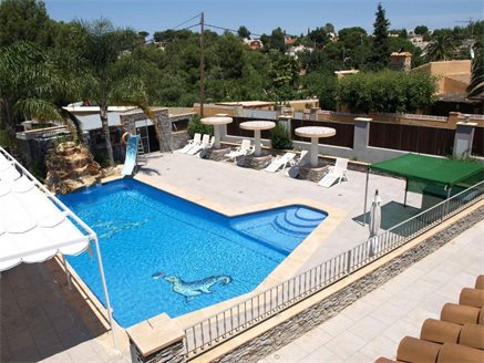 Villa in Denia for sale, with two apartments of three rooms each. The best qualities and all imaginable services, swimming pool, barbecue, party room, wine cellar, office, tennis court, playground... two separate apartments, each of 90 m2, distributed in 3 bedrooms, bathrooms, a kitchen and a living room. It also has a private pool, garden, terraces, BBQ, air conditioning, heating, etc.. Located in the Montgo area in Denia. The property is distributed over two floors; five bedrooms and five bathrooms, kitchen, living-room with very a modern fireplace, very cozy. well decorated, paving by"PORCELANOSA", security glass throughout the house. In the basement, there is a gym, party room, a wine cellar, a private bedroom and a toilet. On the outside, there is a magnificent barbeque, a tennis court, a cross motorcycle circuit, a beautiful swimming pool surrounded by exotic and aromatic plants with an automatic irrigation system.