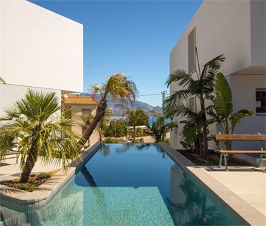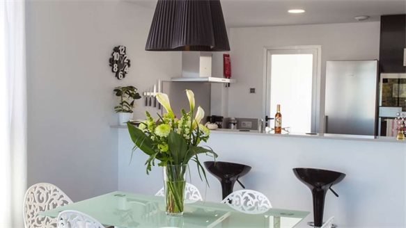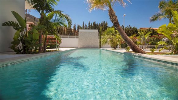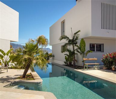 Located at the foot of the Sierra Helada natural park there are four luxurious semi-detached houses of elegant design, each of them consists of 235m2 distributed in 4 bedrooms, 2 full bathrooms and a toilet, open and fully equipped kitchen with Siemens appliances and a large living-dining room with terrace and views to the sea and mountains. On the lower floor we will find a playroom and a fitness room with direct access to the garden. All the villas have terraces with views, an English interior garden and their own private outdoors garden, perfect to enjoy the summer nights, as well as the community pool and barbecue. Another highlight is the parking at the entrance of the house and parking for bicycles with facilities for maintenance.