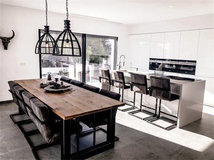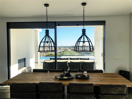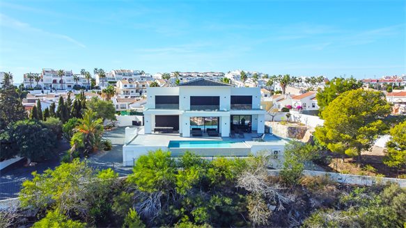 Perched on a hill top in a quiet residential area of Ciudad Quesada, this modern designer villa boasts amazing panoramic views of Santa Pola all the way to the Mar Menor.
