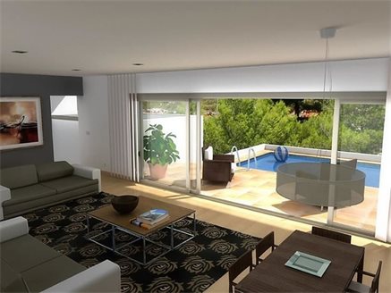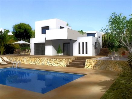 Villa for sale in Denia region, currently under construction completed within a few months. The villa is located in a quiet area near Pedreguer. The villa offers a spacious lounge with dining area, a fully equipped modern kitchen, 2 double bedrooms, a bathroom and the master bedroom with bathroom en suite. In addition, this villa offers a spacious terrace with swimming pool and various seating areas from where you can enjoy the beautiful views over the mountain. Price includes plot, swimmingpool, architects fees, building licences and a 10yr building guarantee. Choose your plot now. Service connection rights, minimum elevation, legal and registration fees or V.A.T. not included. Choosing us to build your dream home offers you the peace of mind of over 30 years experience in the construction business. Changes can be done to plans.
