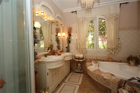 The same theme continues on to the separate dining room that also has built-in cabinets to store cutlery and other utensils in even as a lovely chandelier injects warmth into the room. Through the arch, prepare to be amazed by a most splendid kitchen which is graceful and spectacular from the counters and cabinets to the design and finishing. That is even before you venture further within to the magnificent bedrooms and bathrooms which will make you wish you could sleep all day!