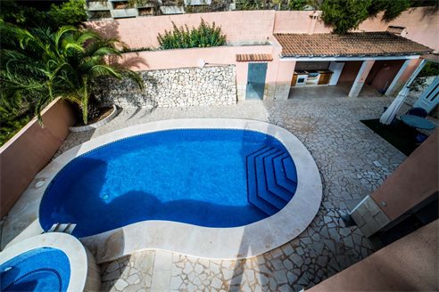 The large swimming pool, exterior whirlpool and plenty trees give this house a tropical feel that can be enjoyed even when it´s less than a perfect day.