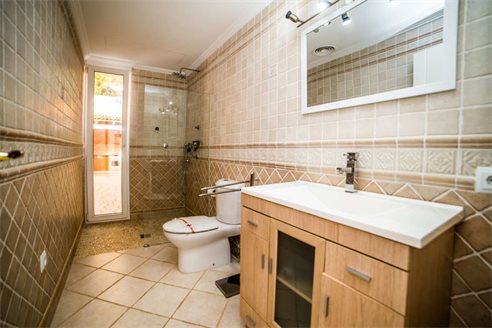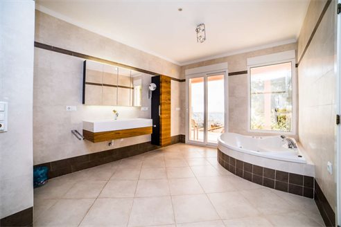 The generously proportioned interior flows effortlessly from the spacious living room that’s dotted with warm pastels and leather seats; perfect ambience for ultimate relaxation. It´s huge glass door and window flood the room with natural light while offering unobstructed panoramic view of the sea and mountains. On the same level is a gourmet kitchen that combines elegance and functionality. It blends granite countertops, marble flooring and modern appliances.