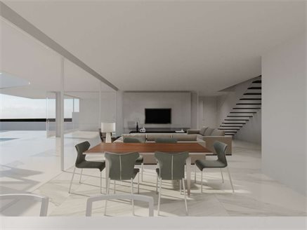 The big open living area, which serves up stunning views of the Mediterranean and the marina, is as welcoming as they come, with its arrangement intentionally constructed to focus on the entertainment installations while yet allowing snatches of nature to creep into the home. As the dazzling and airy atmosphere continues, the dining room has also been included in these magnificent additions. The image would be incomplete without a spacious, well-equipped kitchen in which to explore and try out different cuisines, either alone or with the entire family participating in any way possible, even if it is with jokes and laughter!