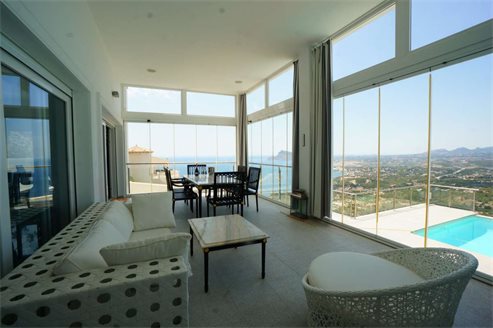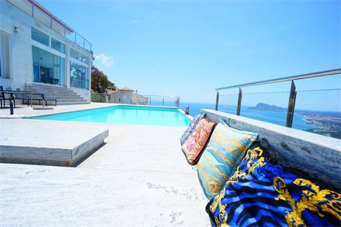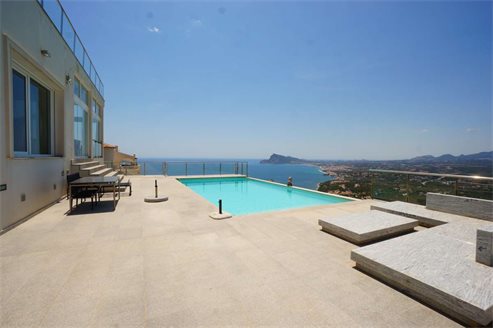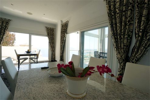 Each of the three bedrooms has a closet and has been created to express diverse styles and personalities, from the walls to the light fixtures. The property also has three baths. The property has a large terrace from which to enjoy the lovely views of the surrounding area. With a swimming pool on the grounds, everything has been planned to take advantage of the panoramic vistas and mediterranean breezes.