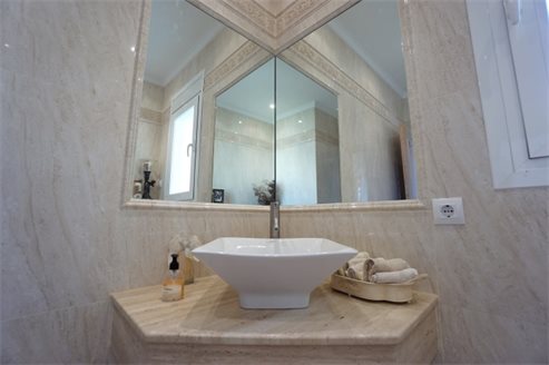 This 3-storey villa of 305 sq.m. on a plot of 816 sq.m. consists of spacious shining rooms and magnificent decor. On the lower floor there is a garage for 2 cars, and two staircases provide access to the house, leading to the porch on the ground floor.