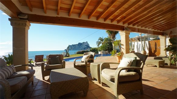 Located in an exclusive residential area between Calpe and Moraira is the most serene villa that is situated right at the frontline of the Mediterranean. An excellent home to live in which is close to restaurants, supermarkets as well as next to the port, this beachfront property emanates an old-fashioned charm that is distinct of Spanish architecture while affording the most breathtaking views of the sea, marina, the Penon de Ifach and the wide open skies. From the pillars supporting the porch areas to the wooden beams that are aplenty in each entrance, along the ceiling and framing the doors and windows, they inject the loveliest earth tones to harmonize the décor and the installed furnishings.