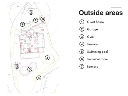 On the outside is a guest house, a garage, a g ym, several terraces, a technical room and a laundry in addition to the swimming pool.