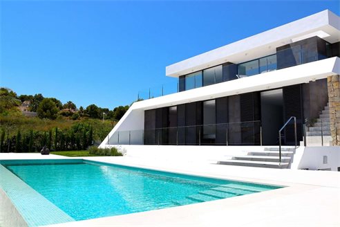 This modern villa is located in the heart of the Costa Blanca, in Moraira, in a quiet environment with excellent sea views and a few kilometers from beautiful towns such as Calpe, Dénia or Benidorm. It is only 9 minutes from Moraira beach.