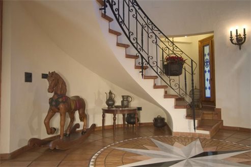 Fully furnished, this home is beautifully organized with everything carefully selected to perfection. The ground level features multiple sitting areas in a layout that is as fluid as it is distinct, marking the main living and entertainment area to incorporate a fireplace, subtle furnishings and a natural element wall which adds character to the space. A theme of wide open doorways continues as room upon room blend and merge into one flowing floor plan which yet shows the various demarcations for the separate areas they are. The walls project to include shelves on which items and books can be stored with one such area forming a library/study of sorts.